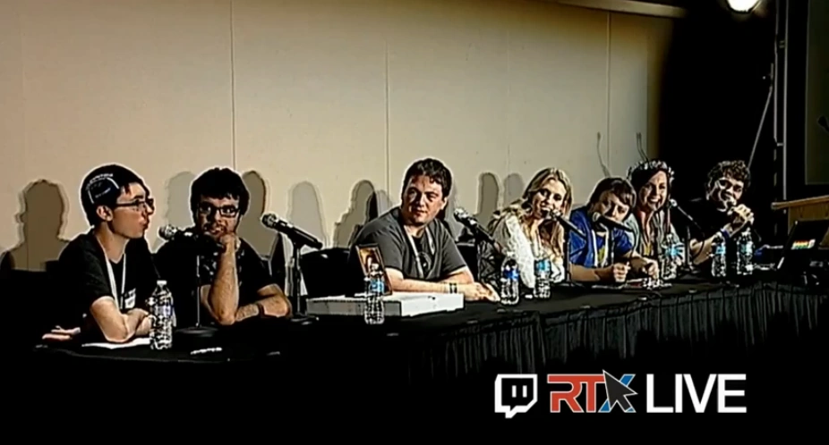 The panel began with Justin talking about how none of the cast members where there and that they were at the RT Podcast. He then went to play a video on Michael's laptop which he failed miserably at. Soon Michael came out to fix his mistake and played Big Booty Bitches, a panel tradition. Justin also refers to the panel as the "121st Episode".
